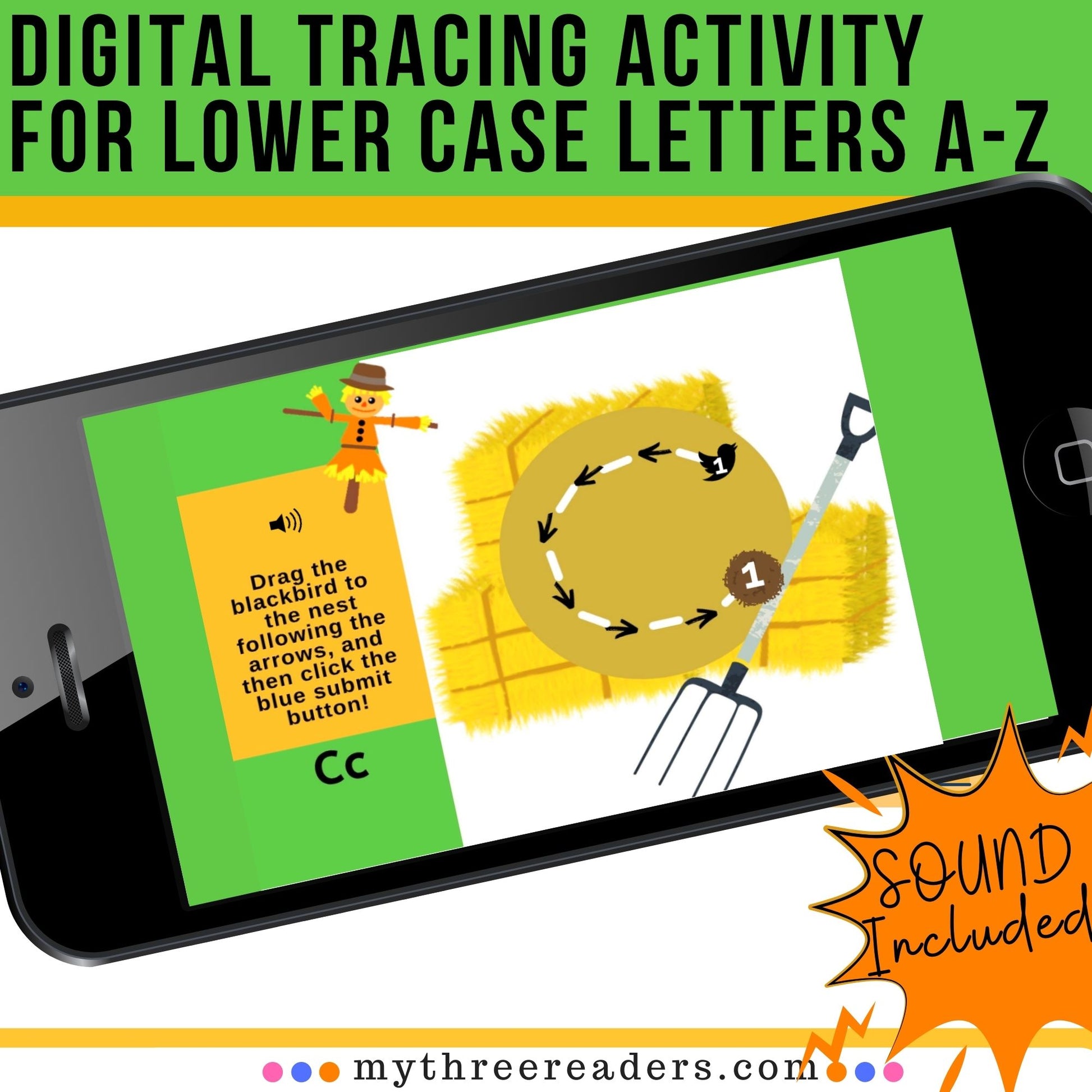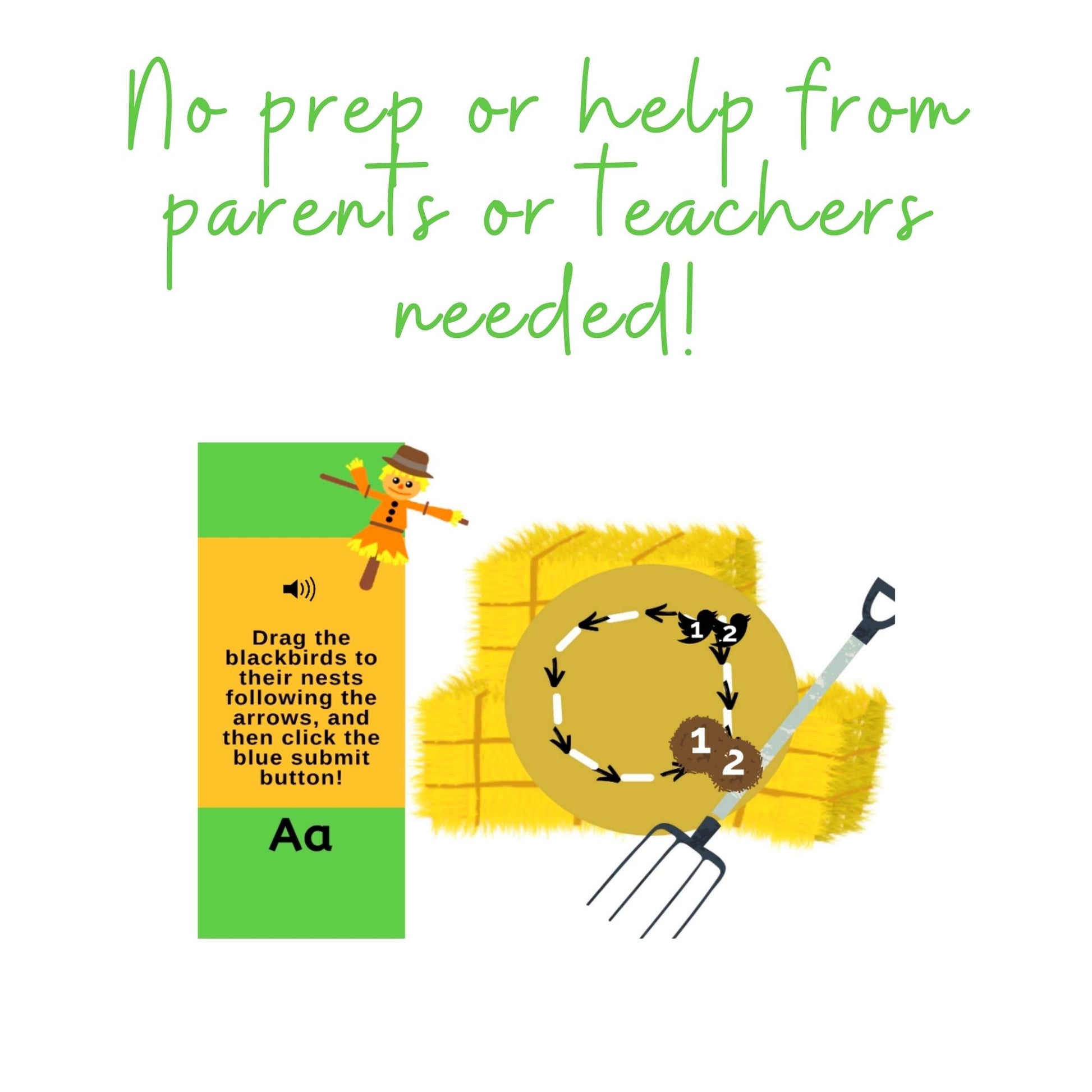 Tracing Lowercase Letters Digital Activity with a cute scarecrow theme! Drag the object to create the letters (with mouse or touch).